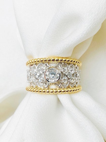 Bague bandeau bicolore et diamants