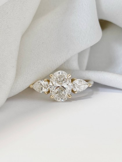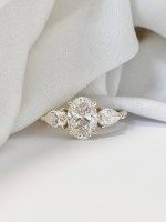 Bague or gris et diamants ovale et poires