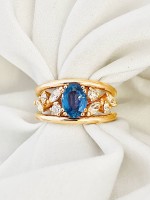 Bague bandeau saphir et diamants sur or rose