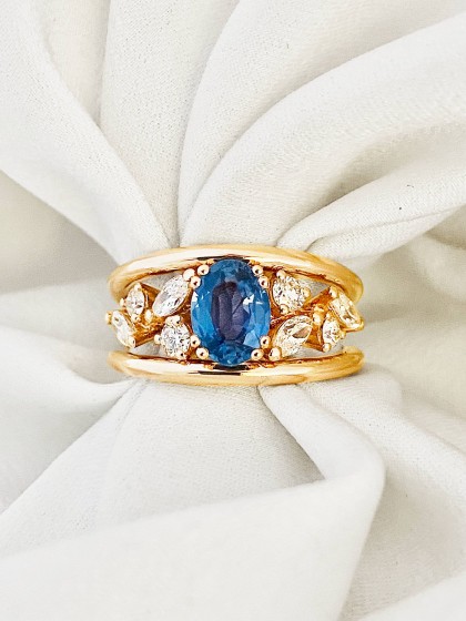 A123 Bague bandeau saphir et diamants sur or rose