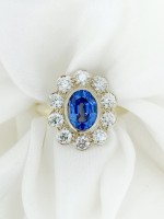 Bague saphir bleu et diamants sur or jaune